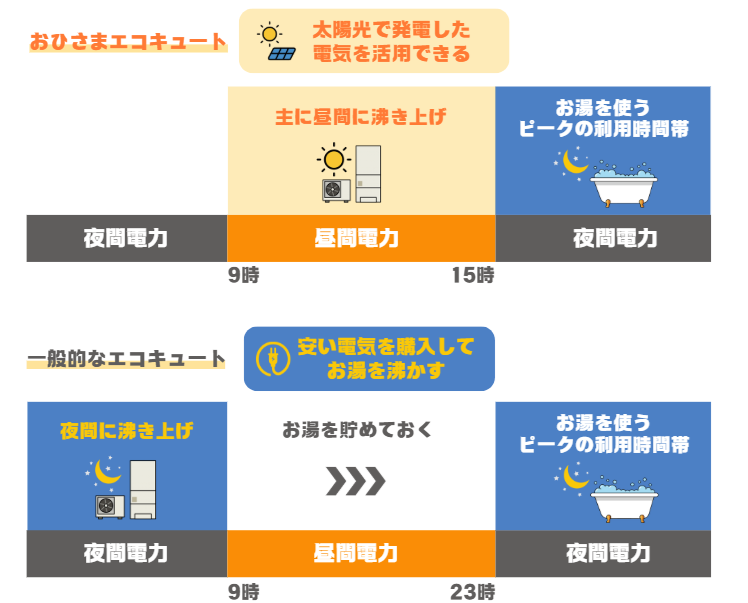 主に昼の時間帯に沸き上げを行うエコキュートを
