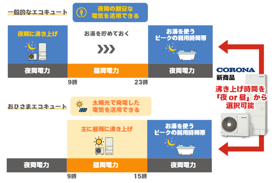 👉沸き上げ時間を「夜 or 昼」から選択可能!